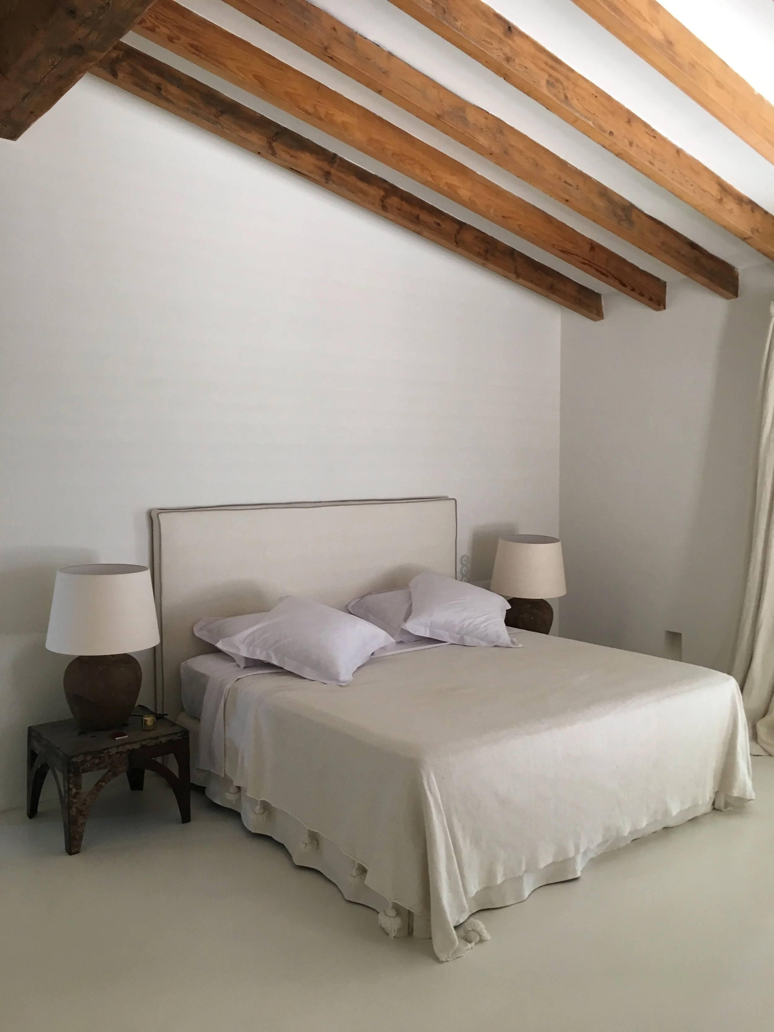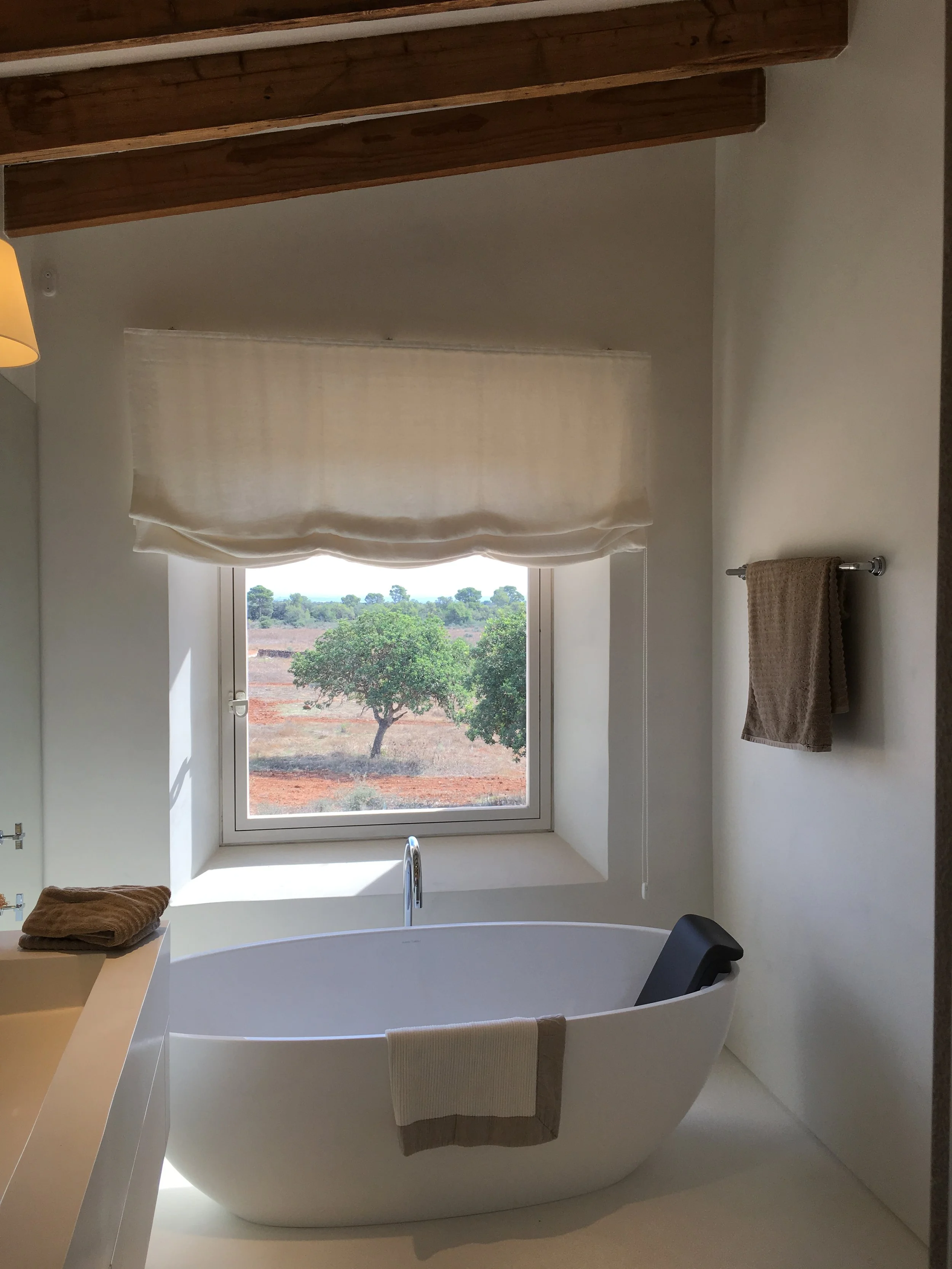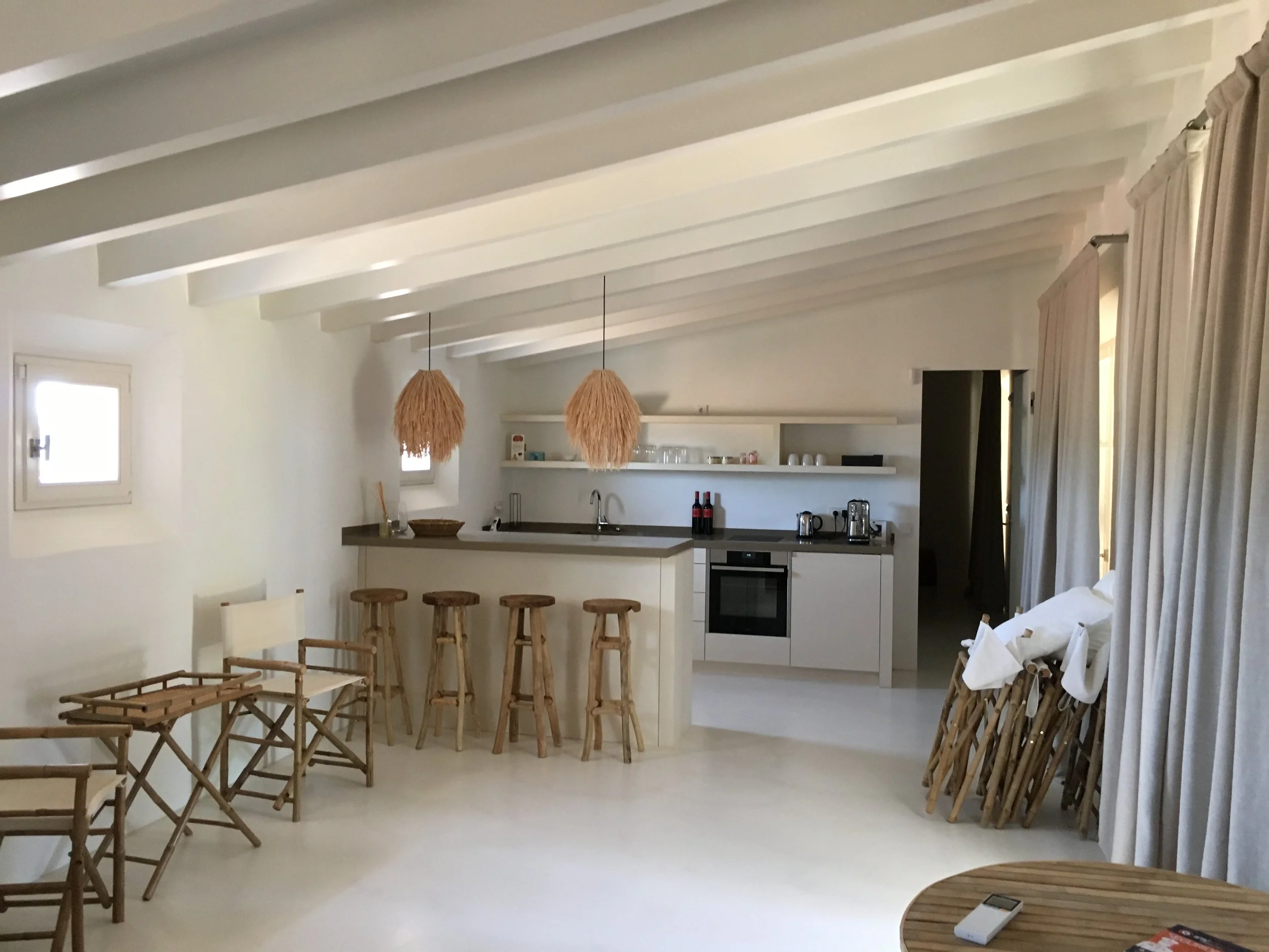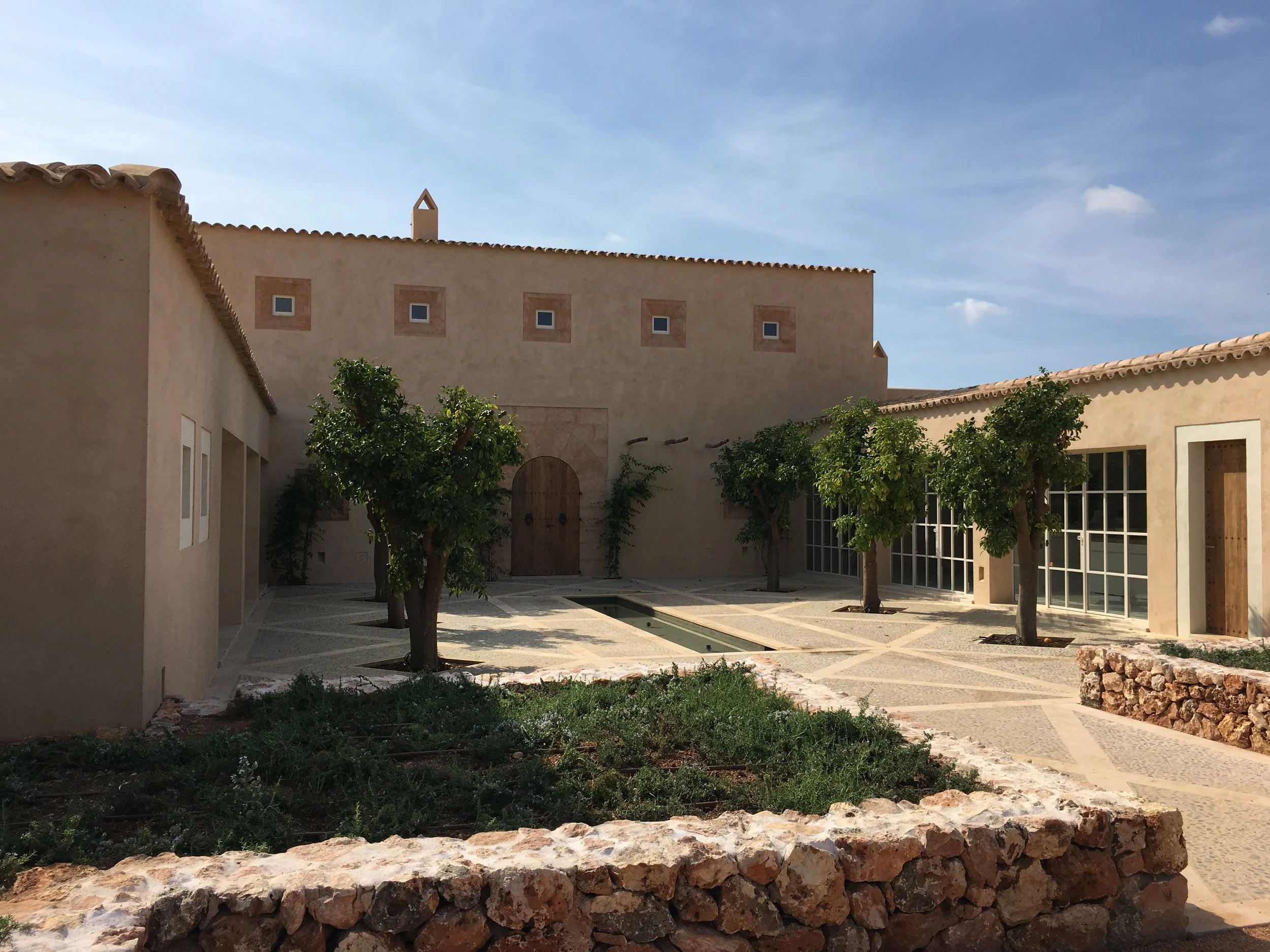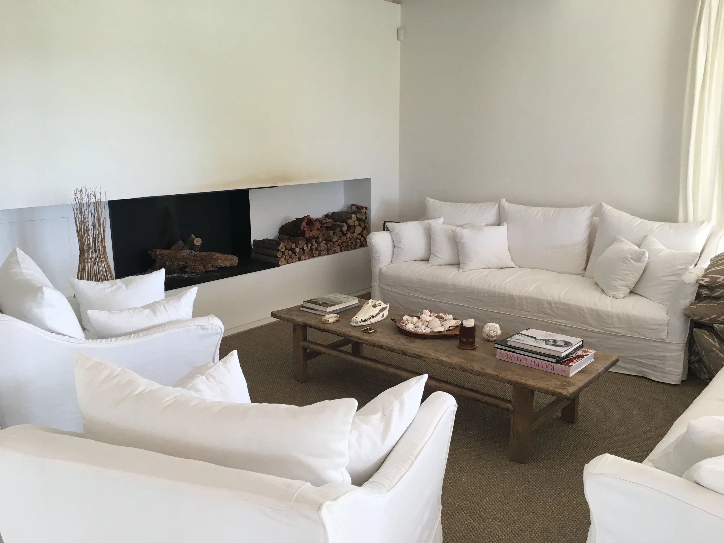 Todo el mobiliario hecho a medida. Sofa, sillería, muebles de exterior y la espectacular mesa de comedor realizada en madera de roble maciza.